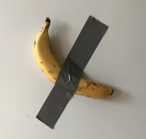 Maurizio Cattelan, connu pour ses œuvres provocantes comme le pape écrasé par une météorite (La Nona Ora) ou le fameux banane-scotchée (Comedian), signe avec América un manifeste brillant de dérision sociale. Elle interroge notre rapport à la valeur, à l’art, au pouvoir et à la décadence.
